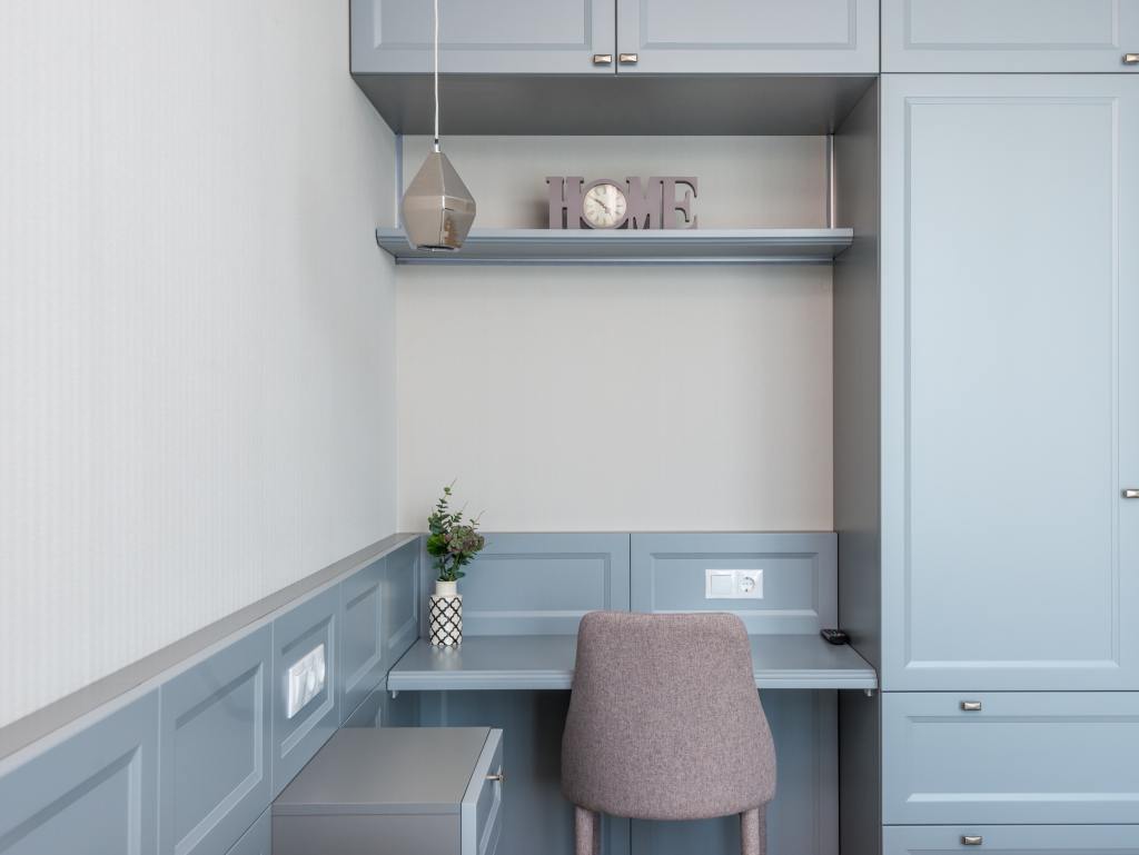 Opta por mobiliario que te permita ahorrar espacio cumpliendo con dos o más funciones, por ejemplo, un sofá cama, un escritorio plegable o pegado a la pared, muebles ocultos, espejo con clóset etc.
